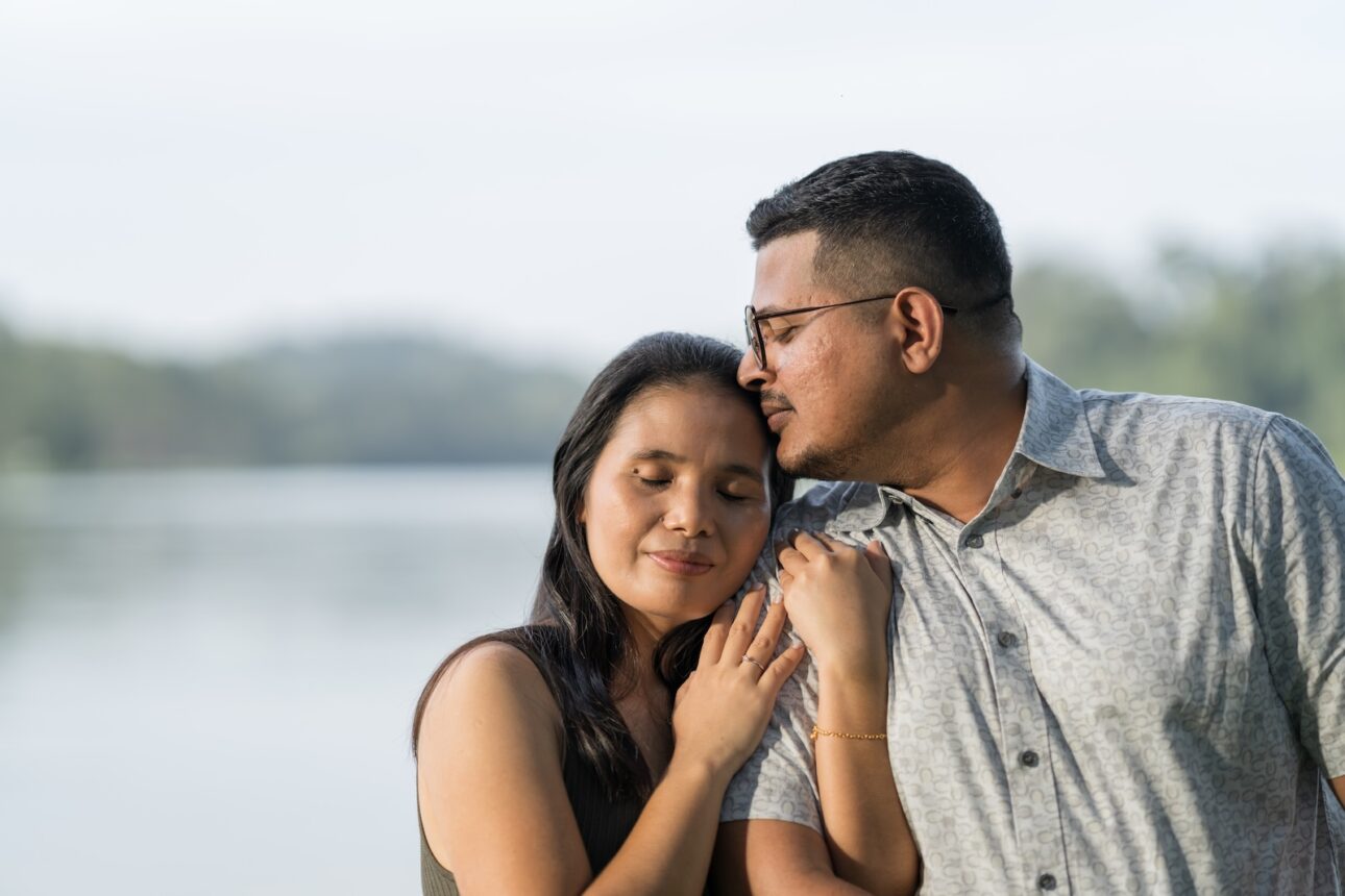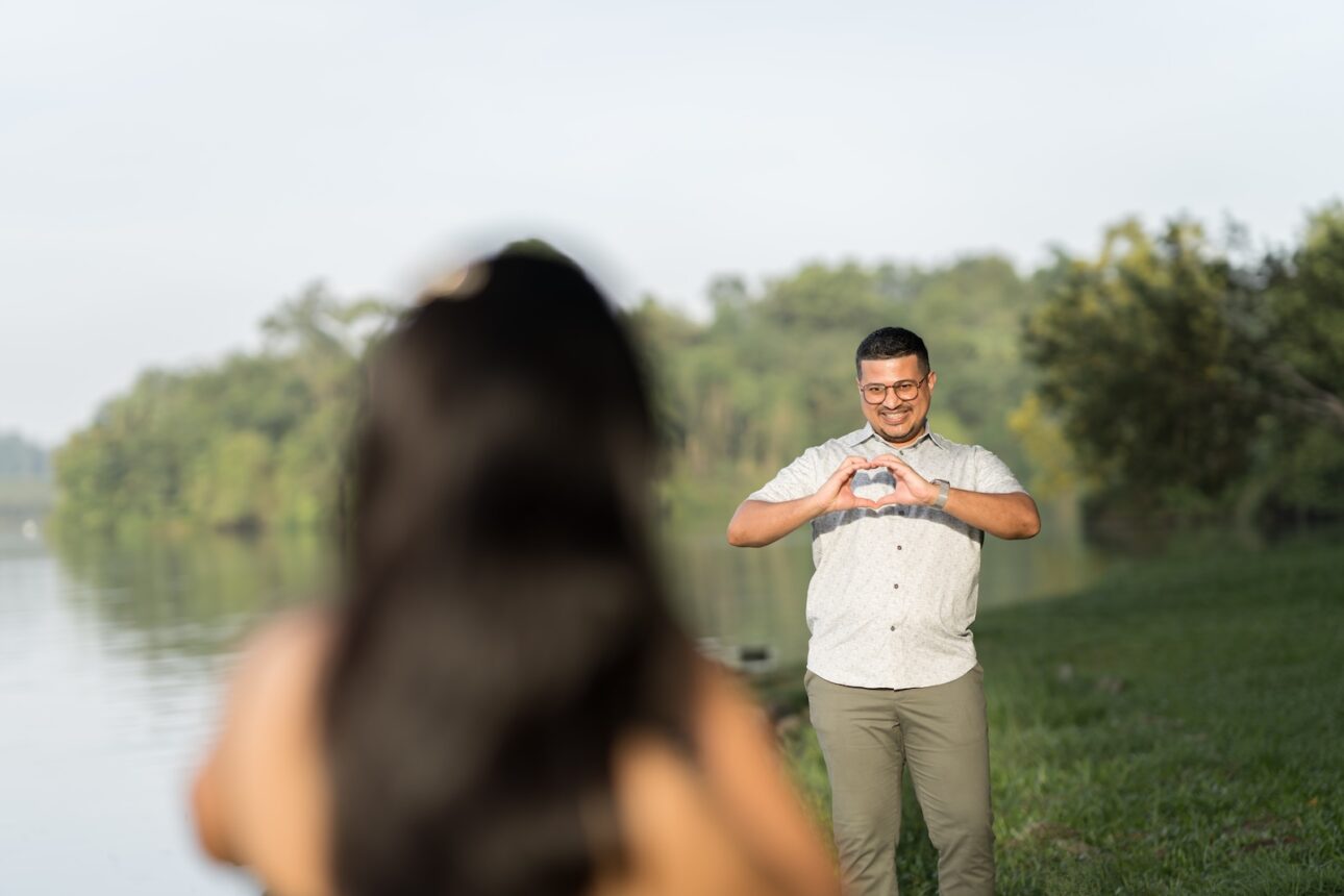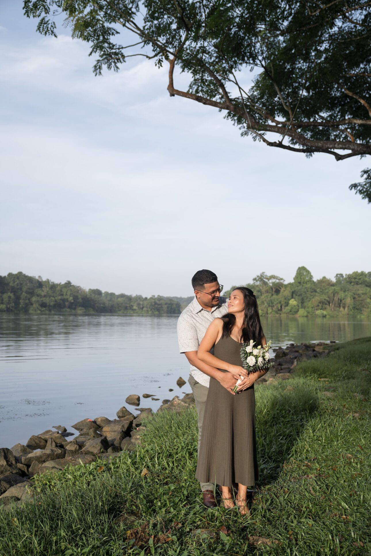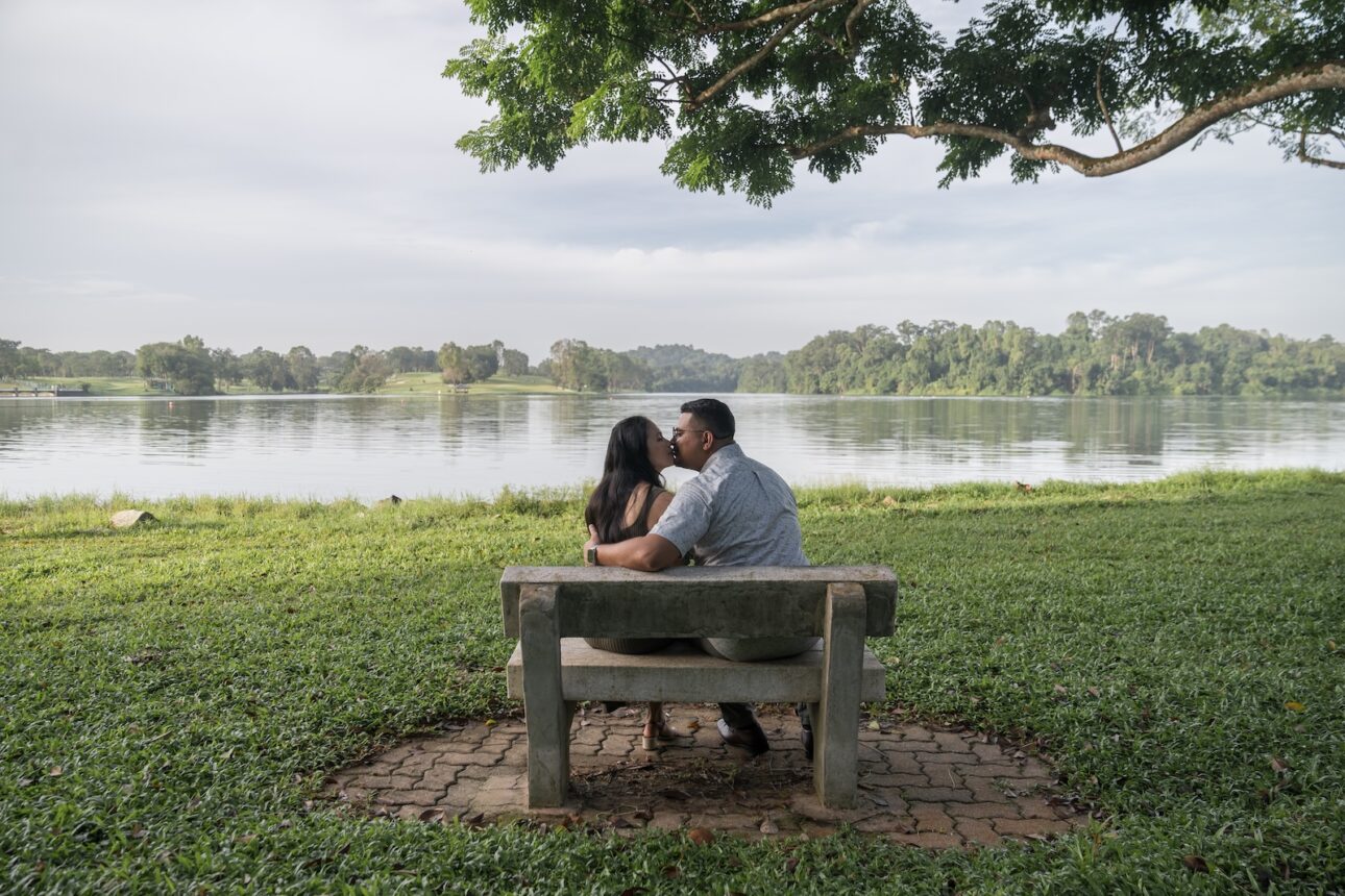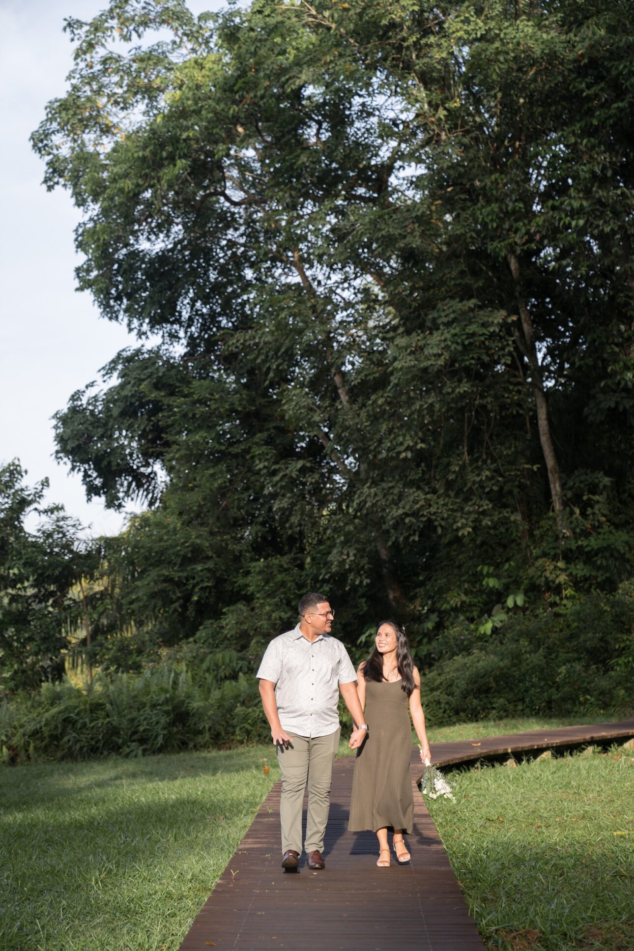 Anton knew Eva loves nature, so he wanted a proposal in one of Singapore’s parks in the early morning, before the hot sun melts everyone. We sneaked in a few exchanges to plan the location, flowers, date and time out without Eva knowing, and Anton had the photoshoot itself as a cover story. We were just headed out for a normal couple photoshoot, of course! Nothing fancy.