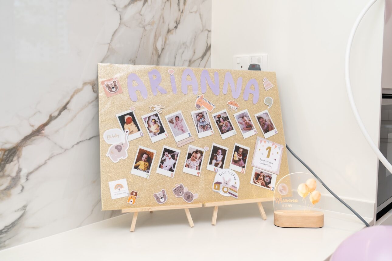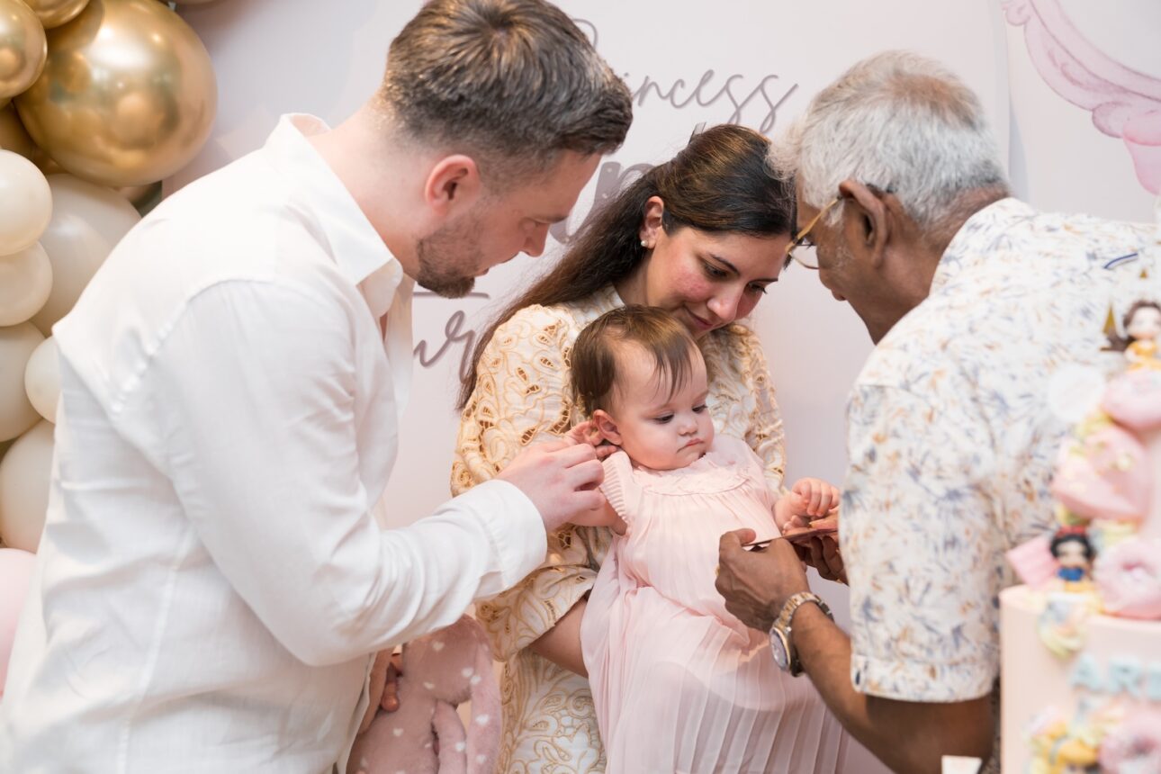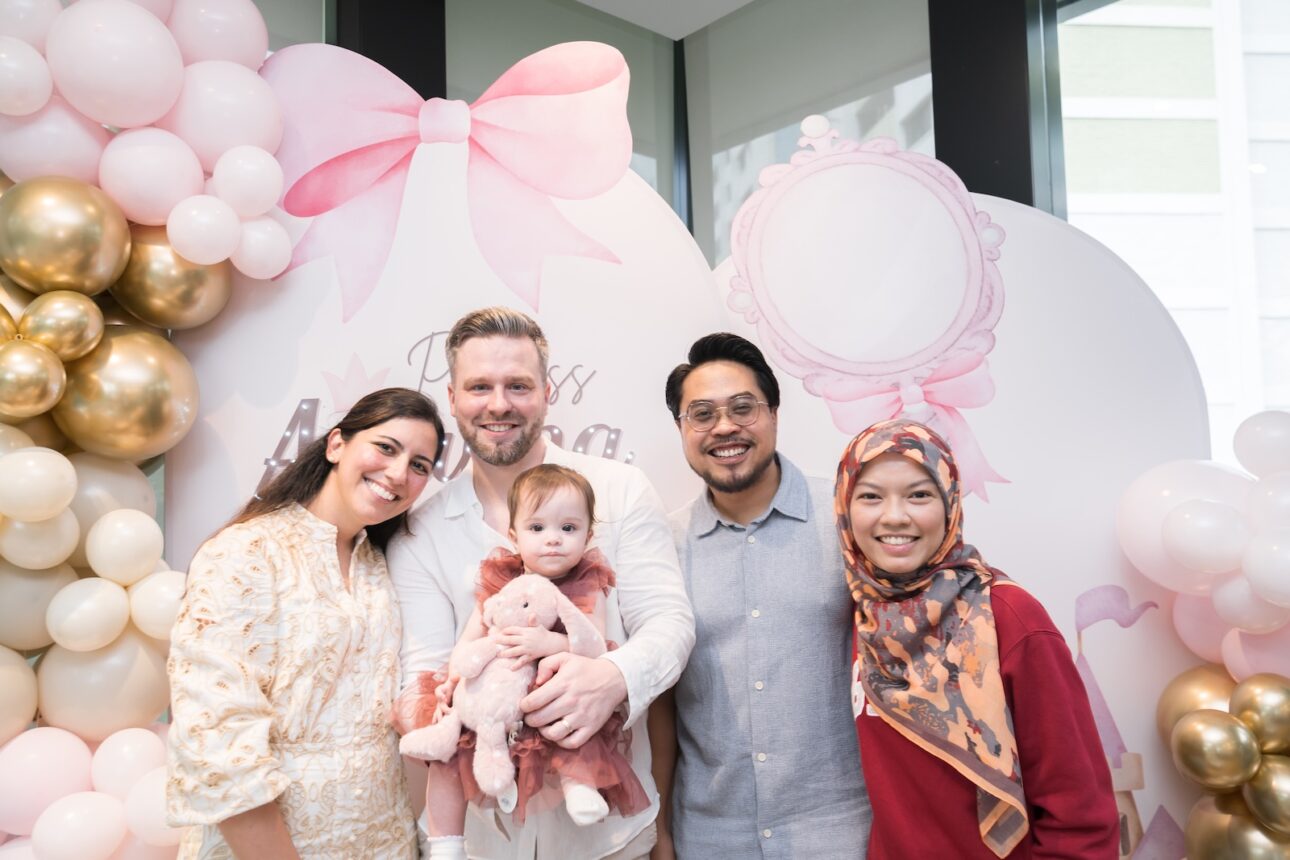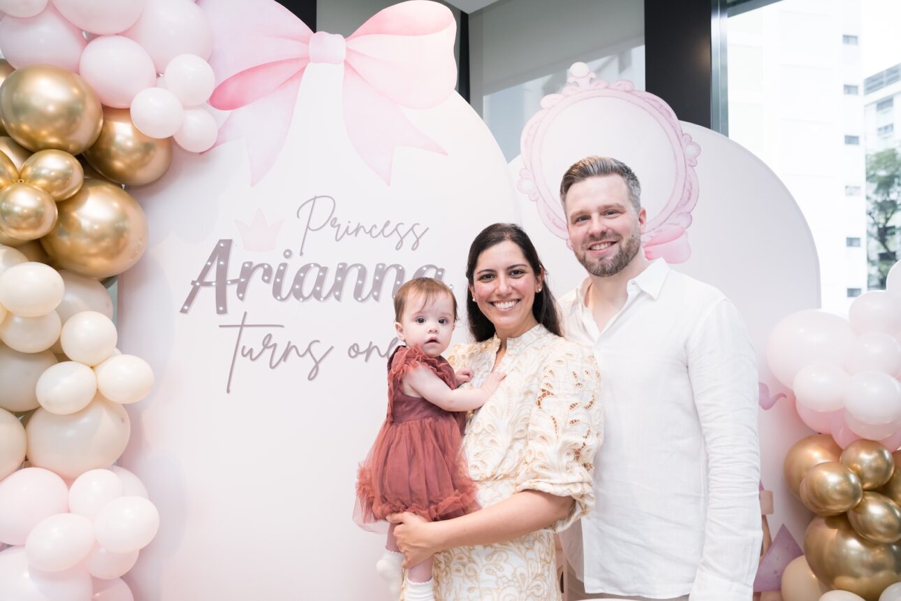 As a mixed German – North Indian child, Arianna is the sweet darling of the day at her first birthday party, doted upon by friends and family alike for her gentle, curious and playful nature. Her parents arranged for a princess-themed party in gold and pink for her, complete with two play pens, an actual rocking pony and sparkly backdrop at the function room of Avenue South Residence.