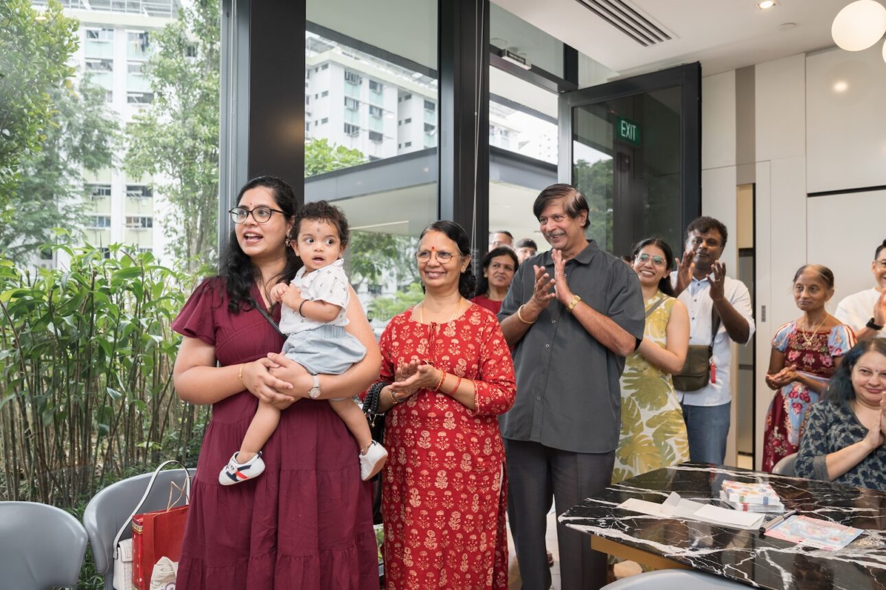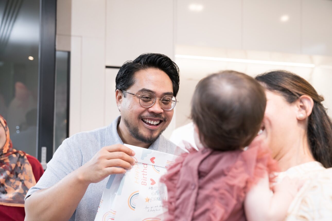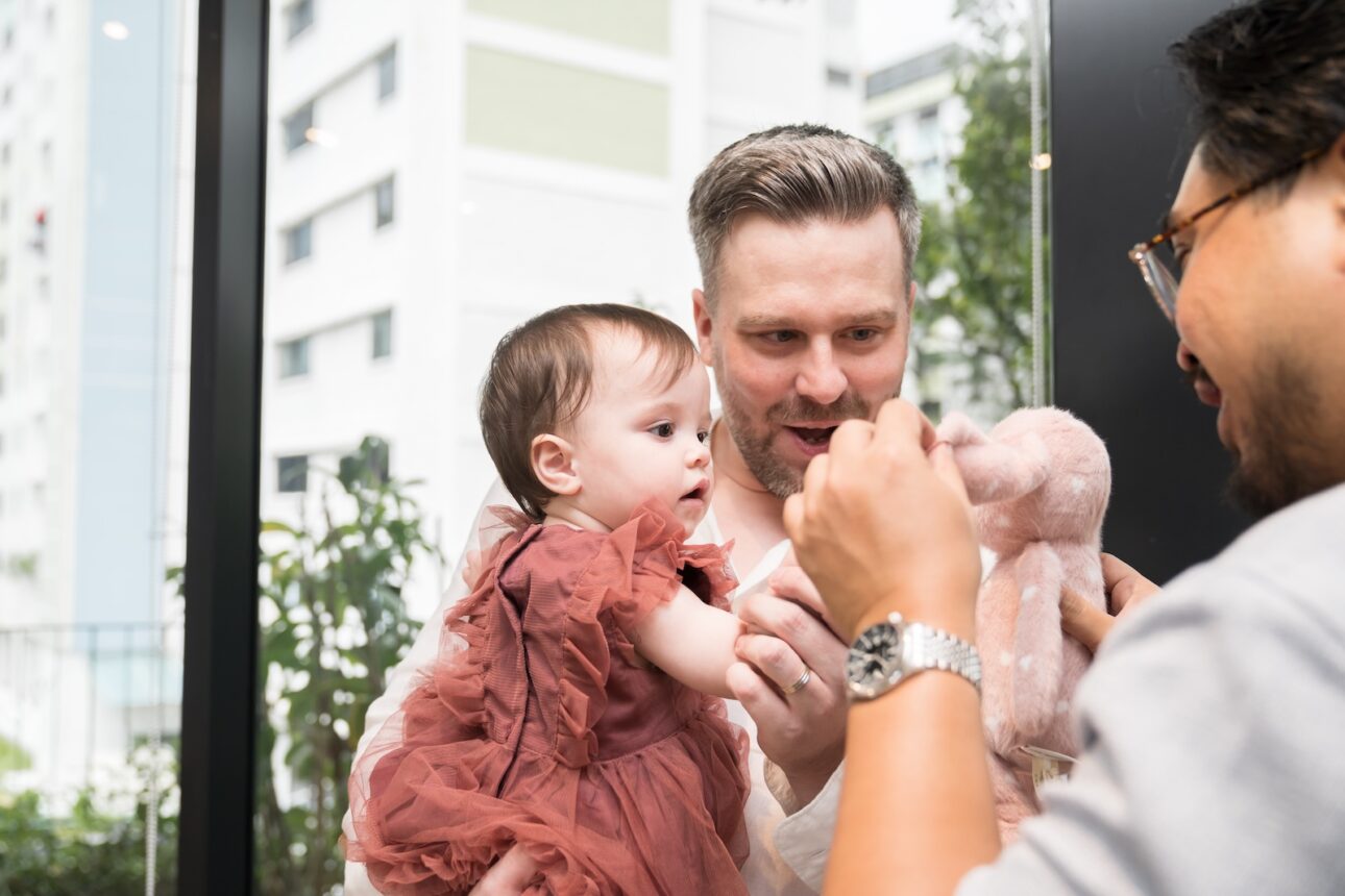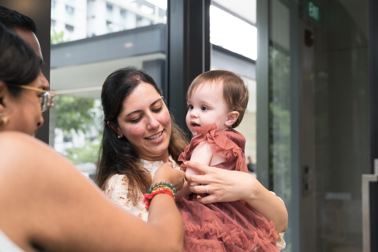 As a mixed German – North Indian child, Arianna is the sweet darling of the day at her first birthday party, doted upon by friends and family alike for her gentle, curious and playful nature. Her parents arranged for a princess-themed party in gold and pink for her, complete with two play pens, an actual rocking pony and sparkly backdrop at the function room of Avenue South Residence.