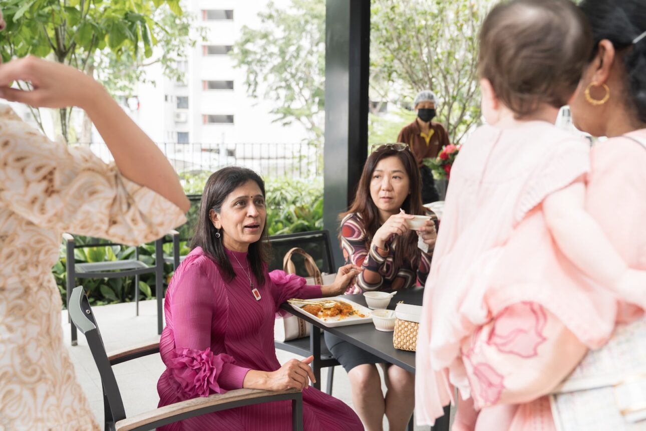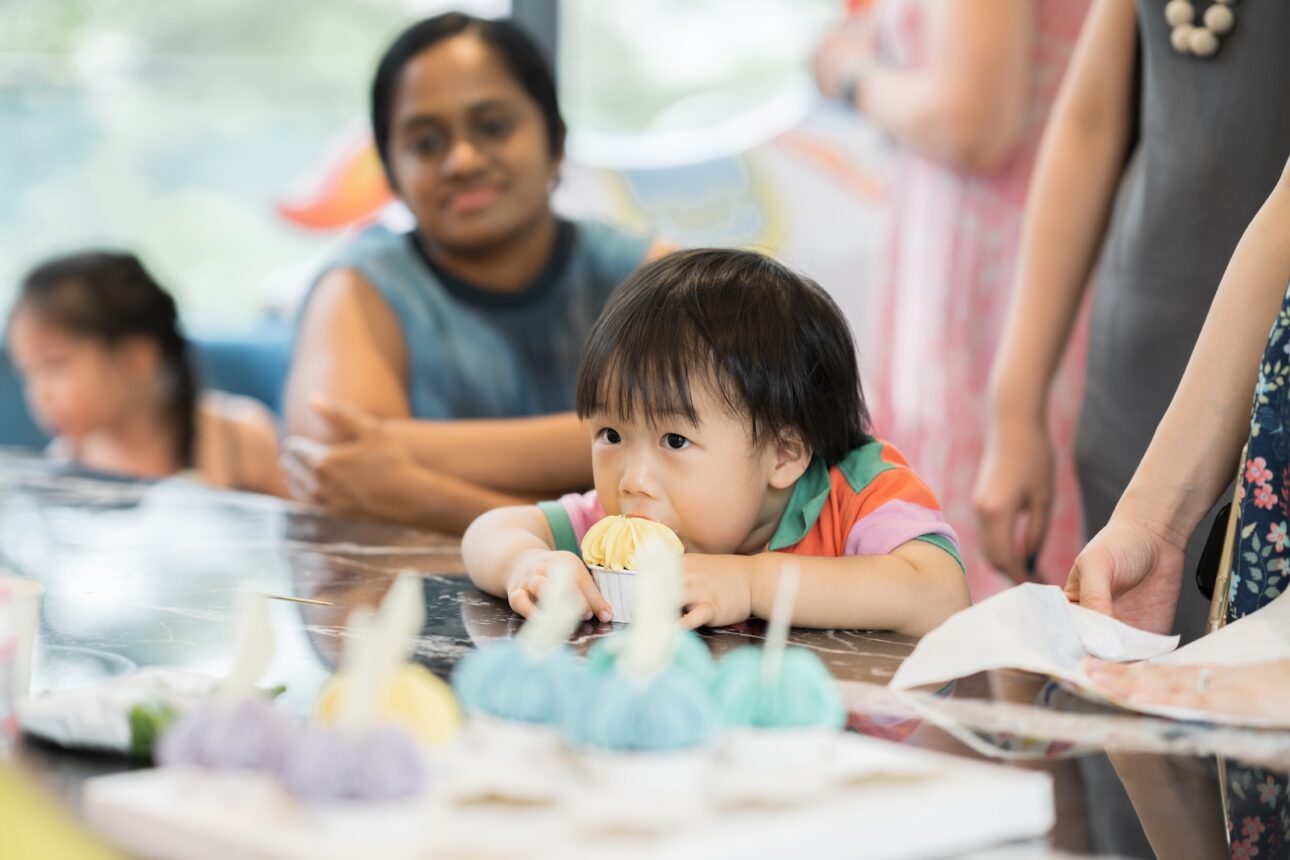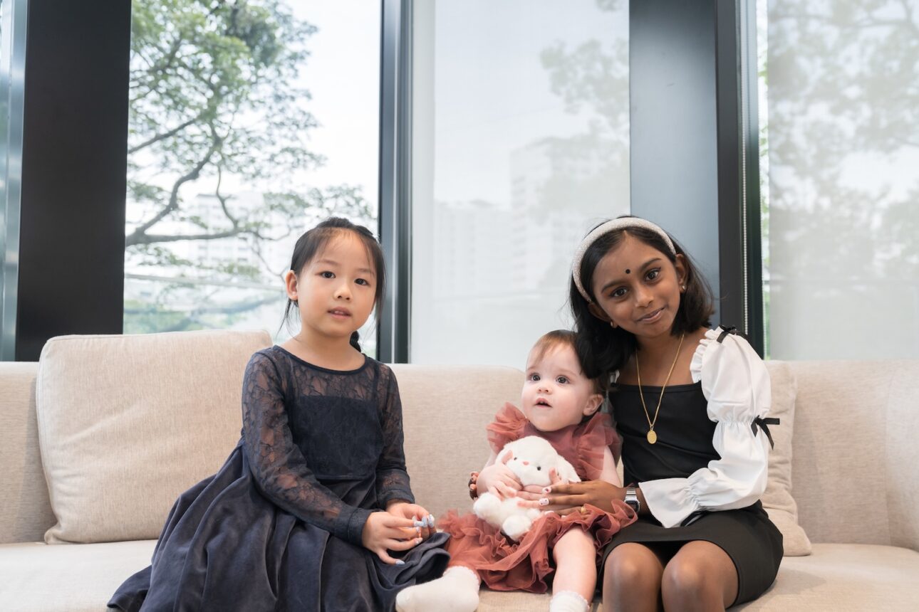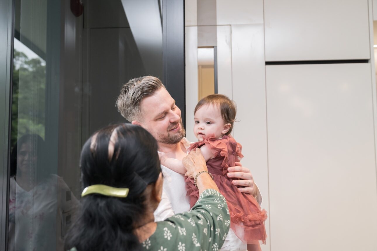 As a mixed German – North Indian child, Arianna is the sweet darling of the day at her first birthday party, doted upon by friends and family alike for her gentle, curious and playful nature. Her parents arranged for a princess-themed party in gold and pink for her, complete with two play pens, an actual rocking pony and sparkly backdrop at the function room of Avenue South Residence.
