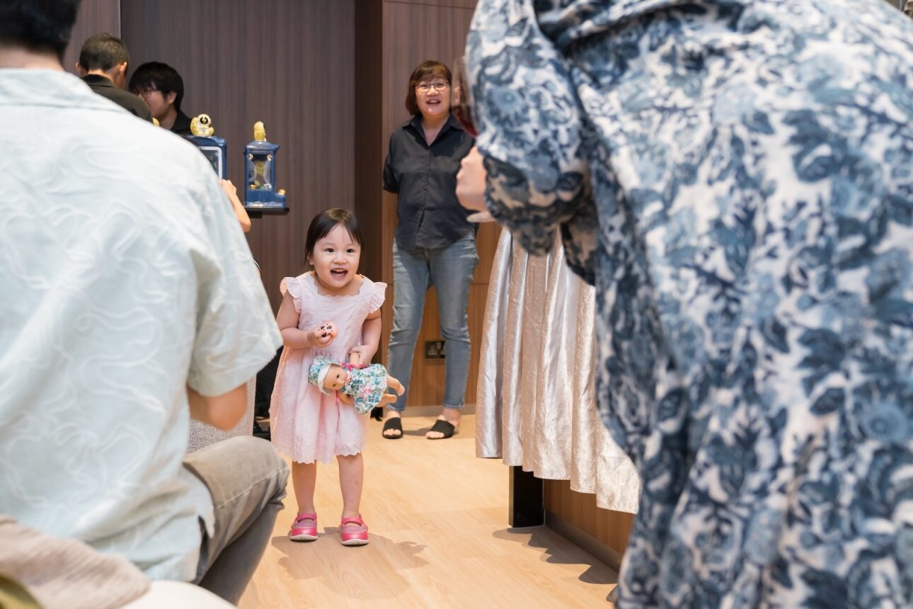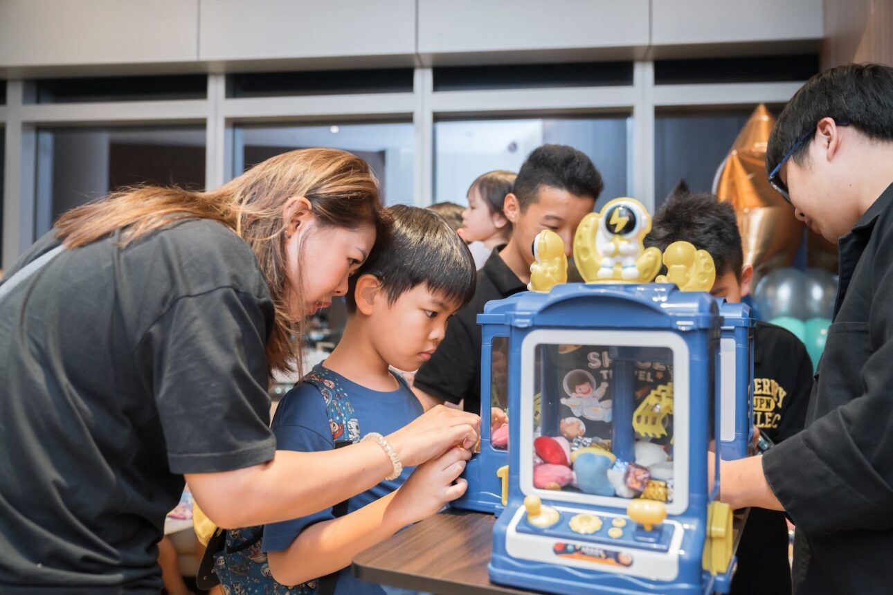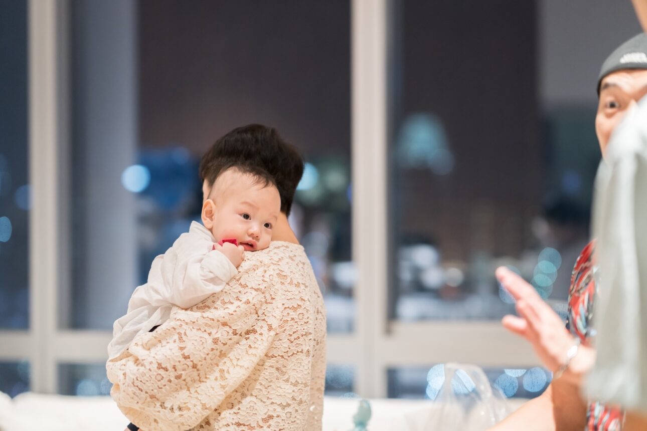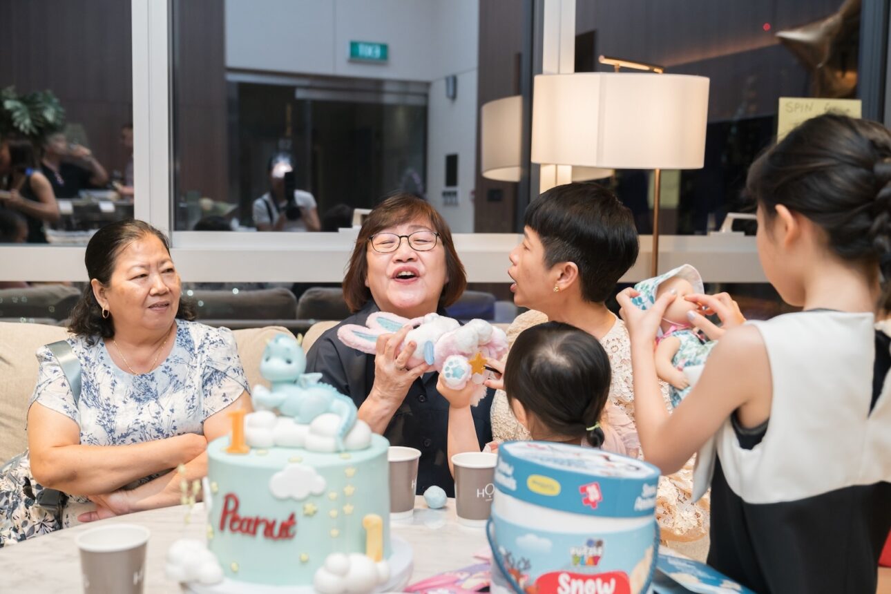 Christopher, nicknamed Peanut for his cute round face was definitely a jubilant star of the show at Marina Bay Sand Residences Bay Lounge (yes, some epic Singapore views was just outside). He absolutely adored the balloons, being held by mum and grandma, and his first taste of birthday cake. He also made a great attempt at the UFO machine, but loved watching his cousin fix the machine a lot more.