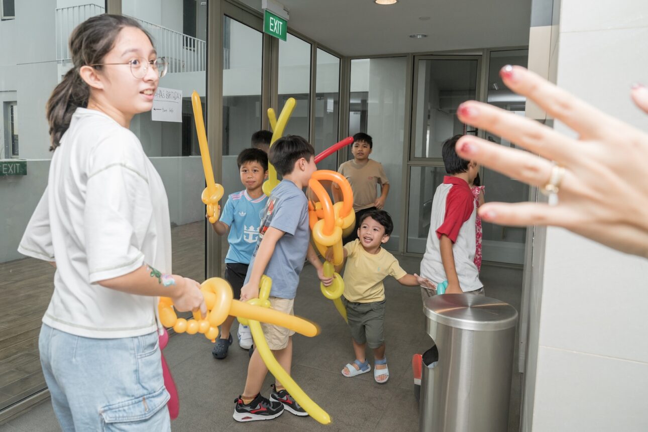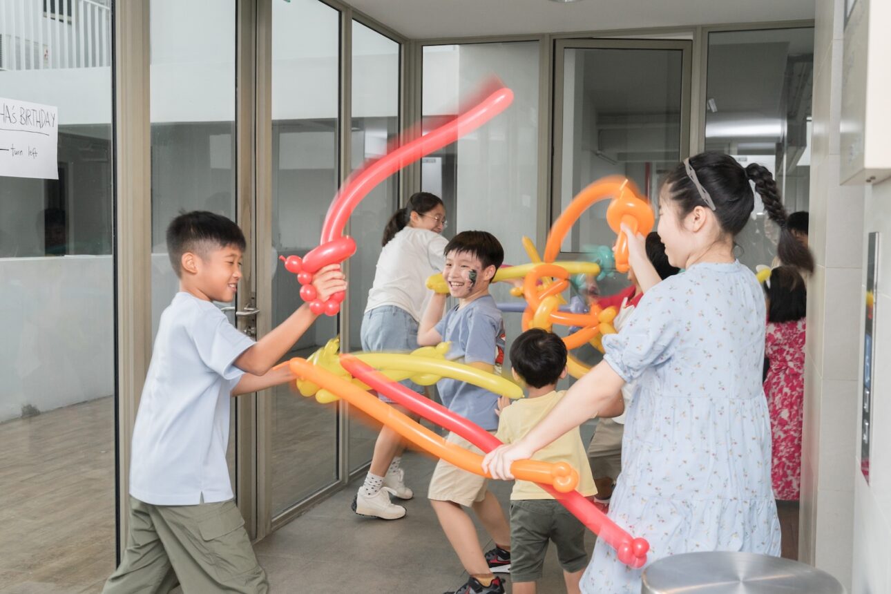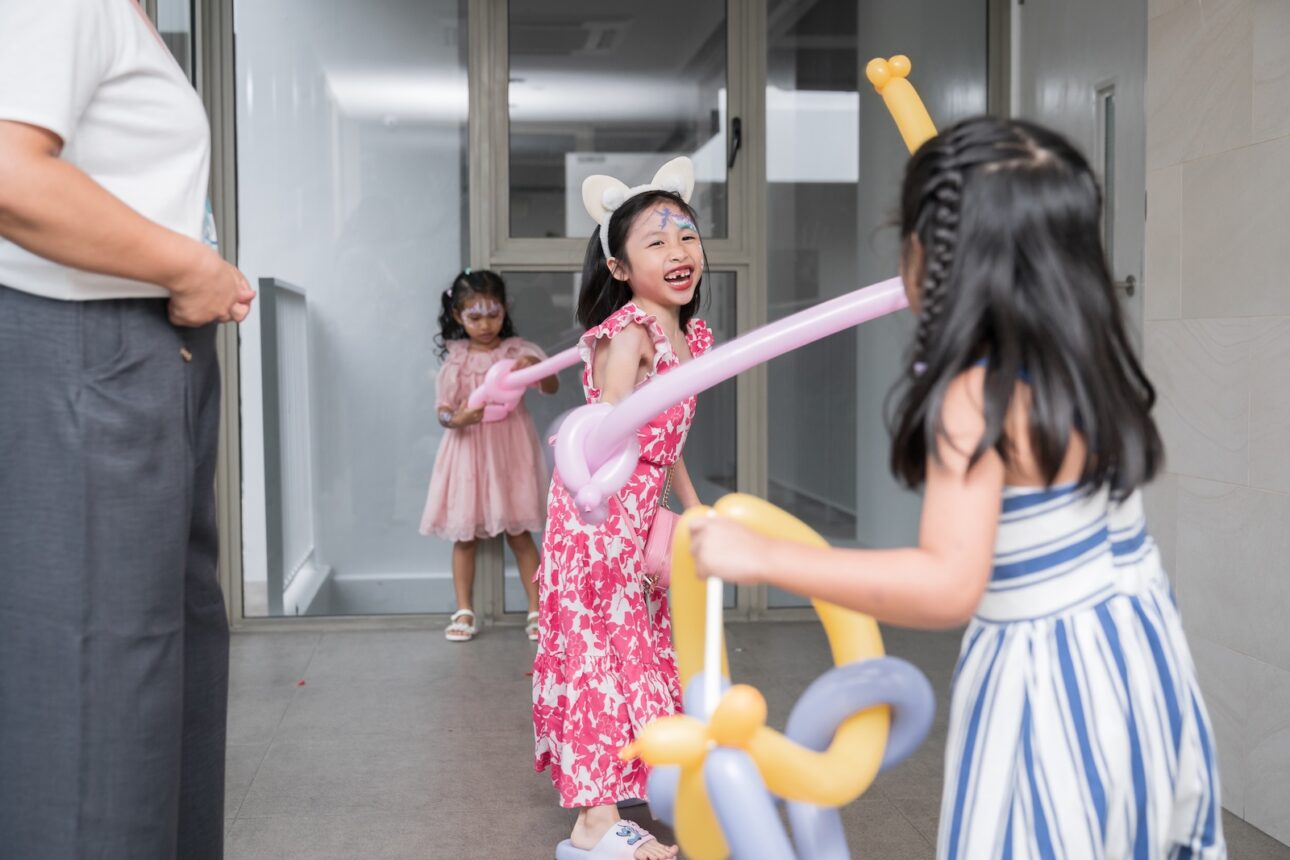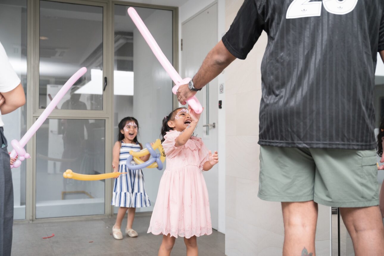 The biggest battles of the day were fought with the balloon swords and an actual firing balloon arrow, which the kids absolutely adored and took outside to spar with such excitement that Isha’s mum had to calm them down before they brought down the entire building.