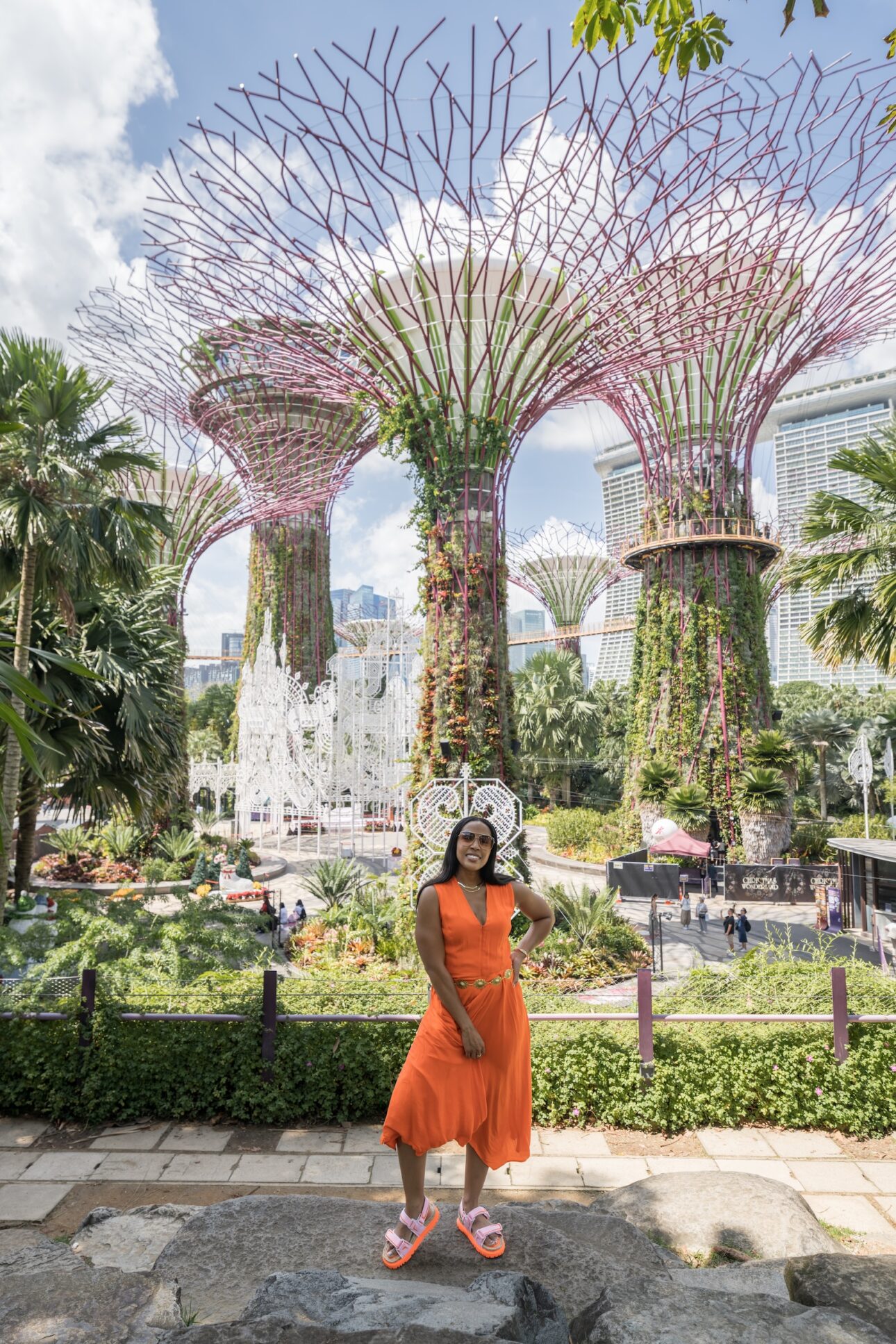 Posing came naturally for these influencers, and having beautiful (and manageable) summer dresses, sensible shoes, fashionable shades and flawless makeup does help a lot with getting great shots! We started and ended at Marina Bay Sands hotel, which is the most convenient hotel for such a tour. We bumped into their luxury cruise friends while dining at Hortus, which was a nice little reunion over the restaurant’s famous pistachio ice cream burger.