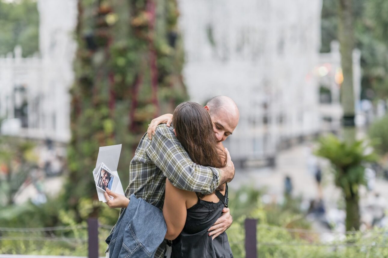 We even switched from WhatsApp to Telegram to keep our ongoing schemes under wraps. That ranged from TikTok videos on how to get onto the Instagram location, timings of approach, crowd-control on-site, to where exactly to stand and the sequence of events. Shalev would hand her a handwritten set of notes and photos of their lives together, and he would propose shortly after – which is when I would finally pop into the picture.